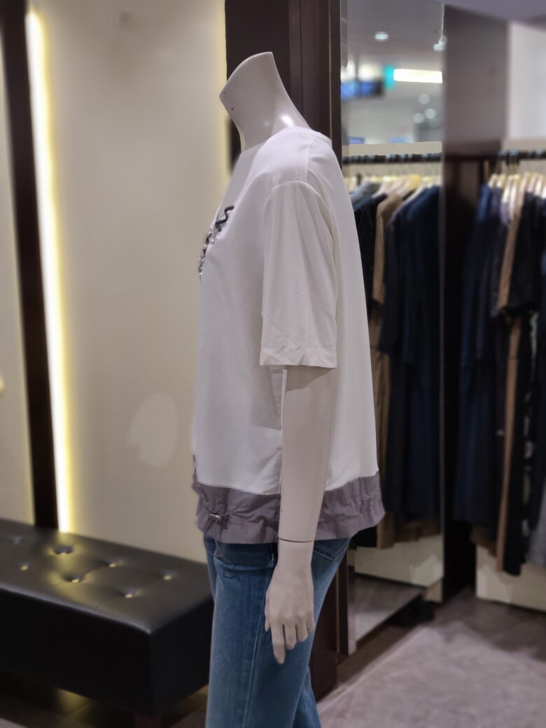 라운드넥 밑단 스트링 조절 반팔 티셔츠입니다
