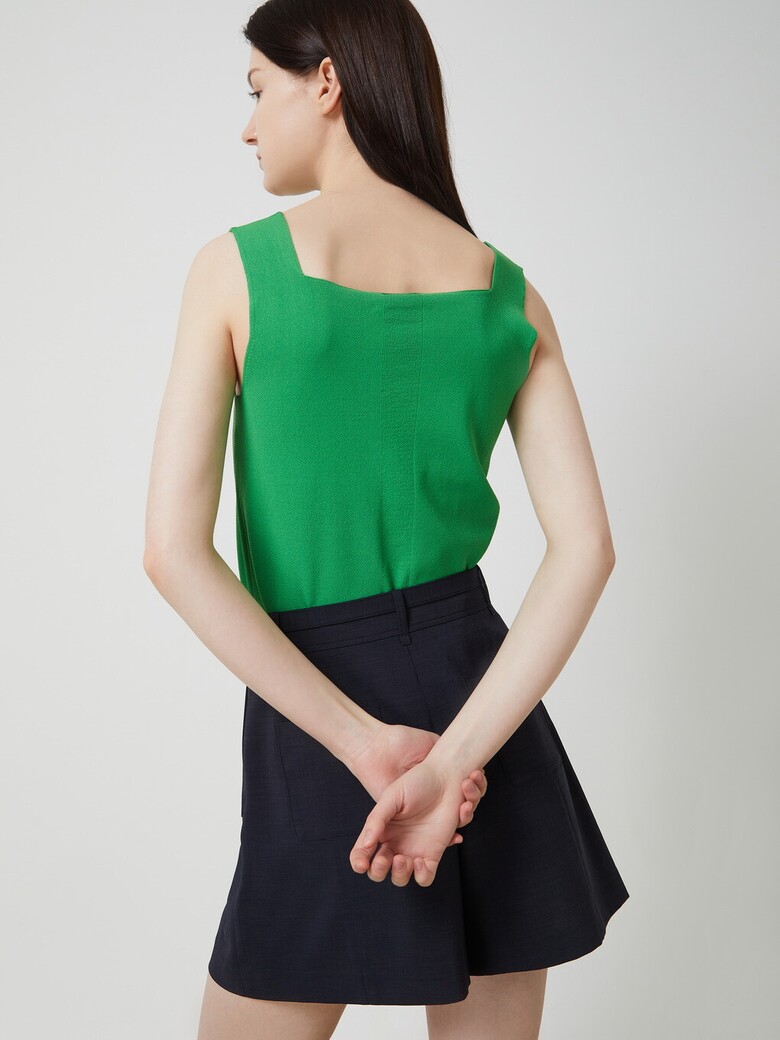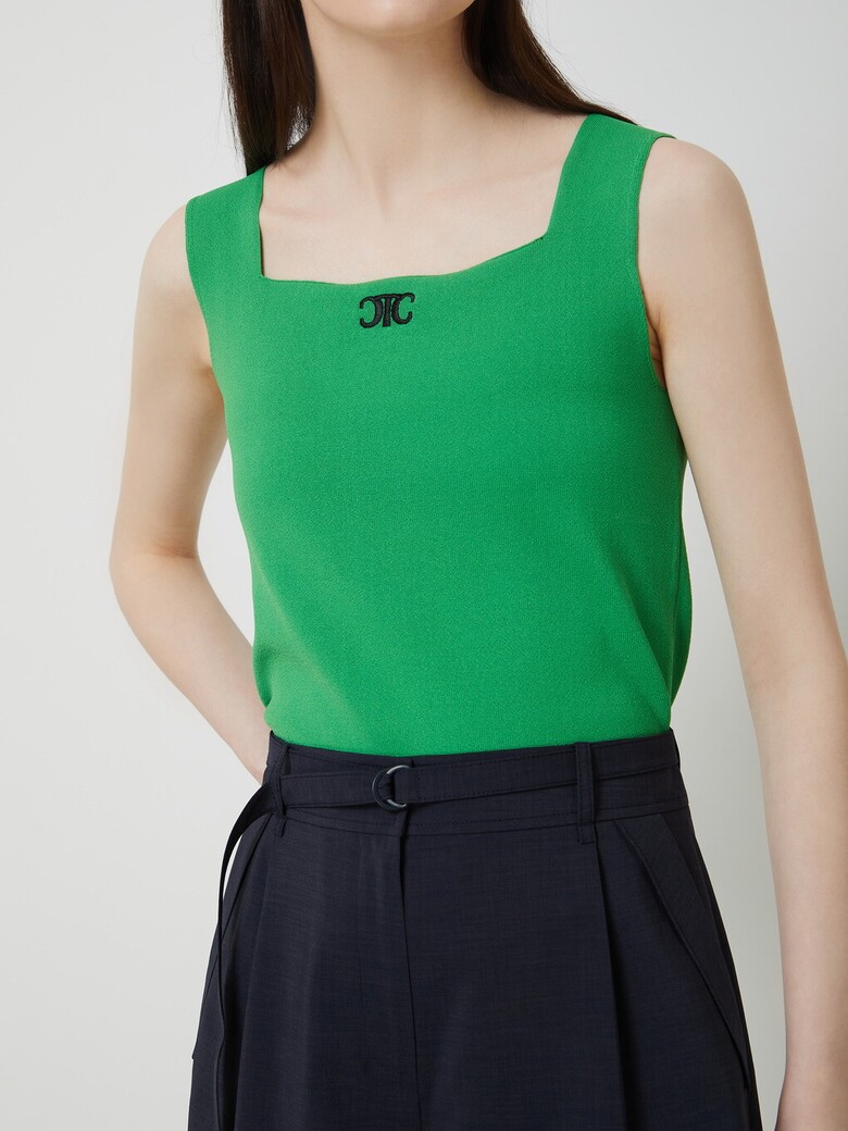 - 비스코스 나일론 혼방 소재의 니트 슬리브리스 탑입니다.