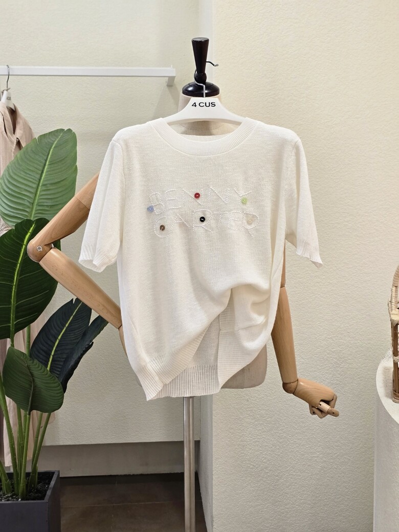FM5D3KT31893_단추 디테일 자수 레터링 니트