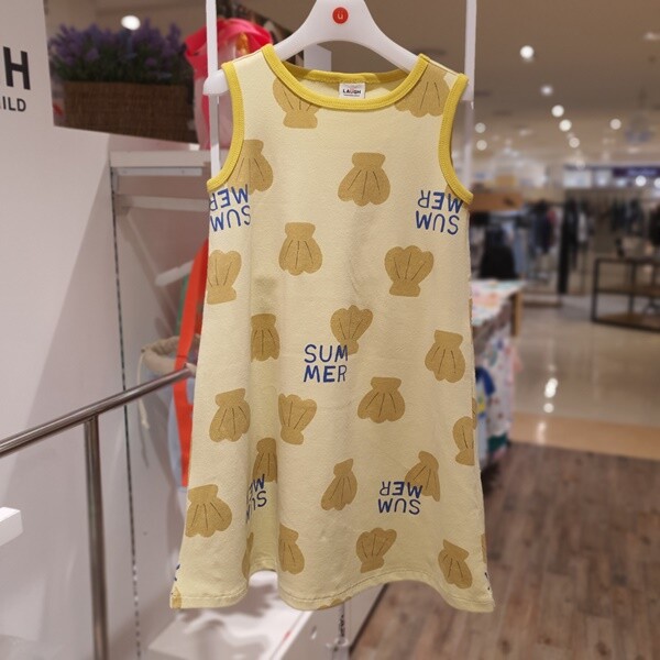 저지 원피스로 한여름에 편하게 입고 활동하기 좋으며 시원한 그래픽 프린트가 포인트 입니다.