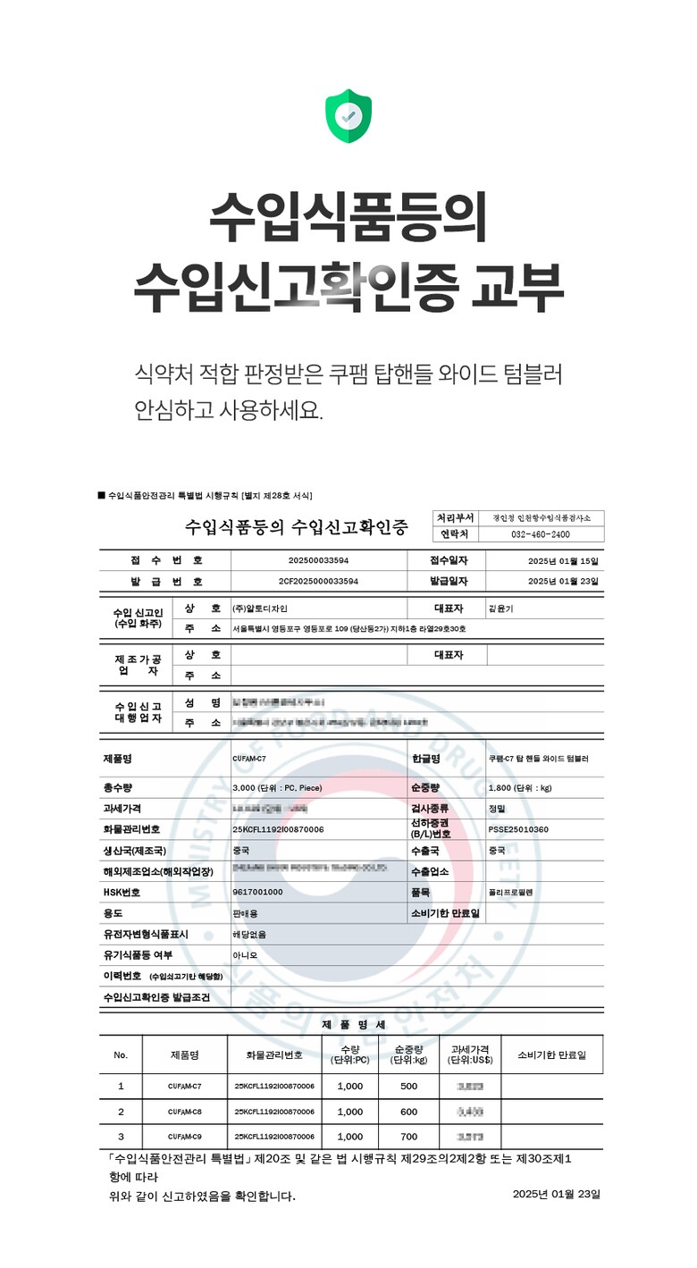 | 10. 수입 기구/용기 | 상세페이지 참조 |