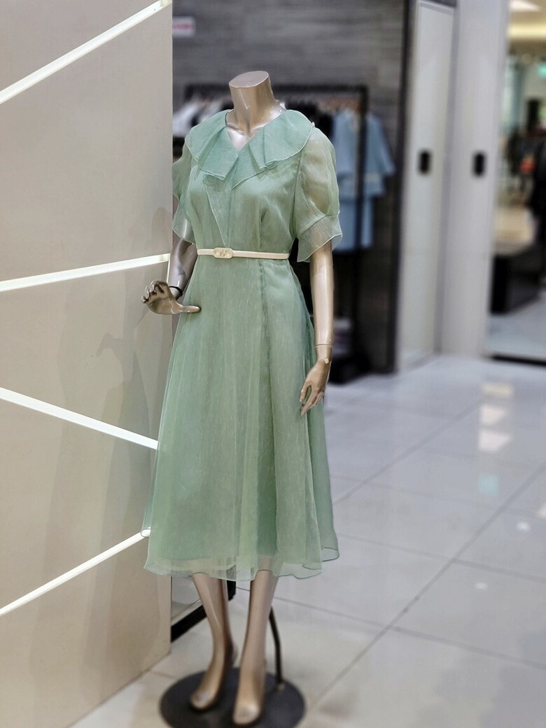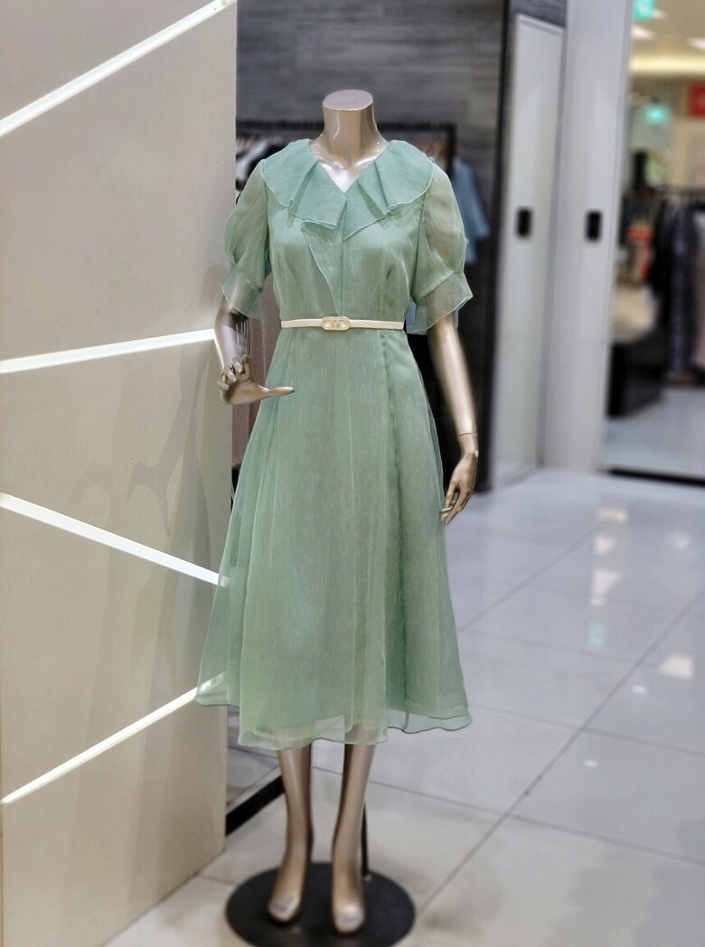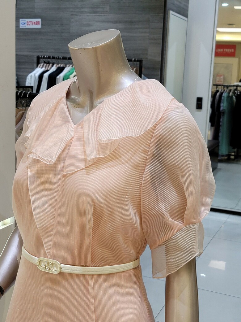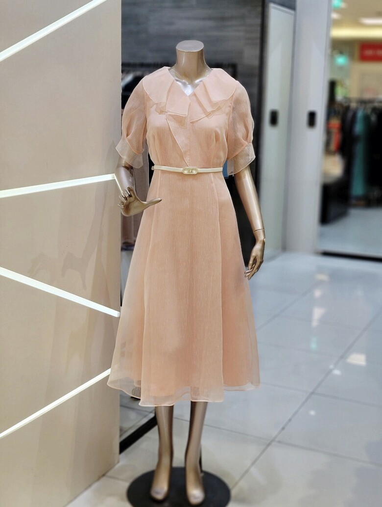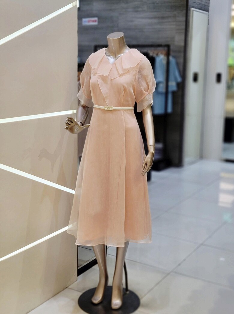 맵시를 더해주며 시스루 볼륨 슬리브로 입체감을 더한 원피스입니다.