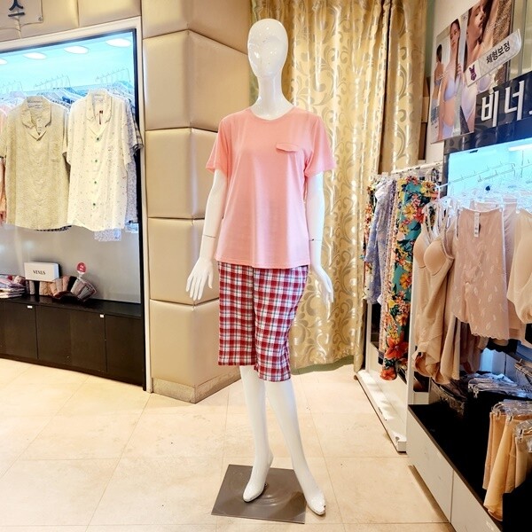VEV3910F VEP3910F_쿨 솔리드상의 주름체크바지 홈웨어