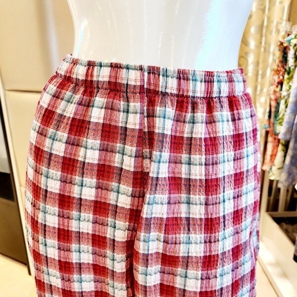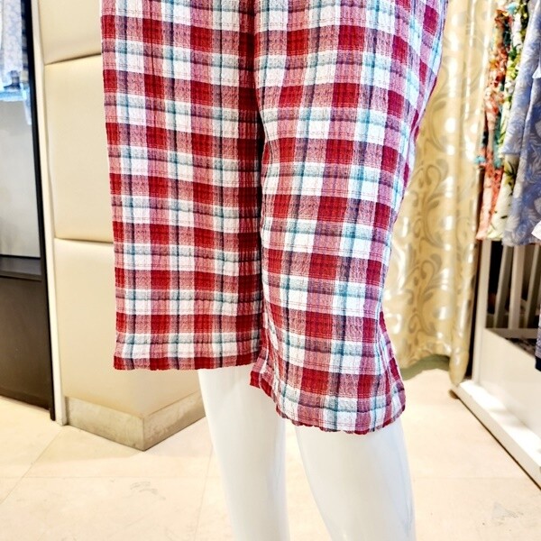 주름지 선염체크 반바지로 시원하고 찰랑거리는 느낌이 좋으며 구김이 없어 관리가 편리합니다.