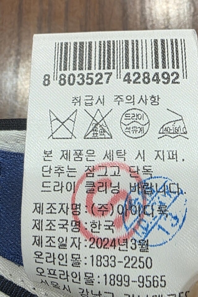 | 6. 세탁방법 및 취급시 주의사항 | 상품상세참조 |