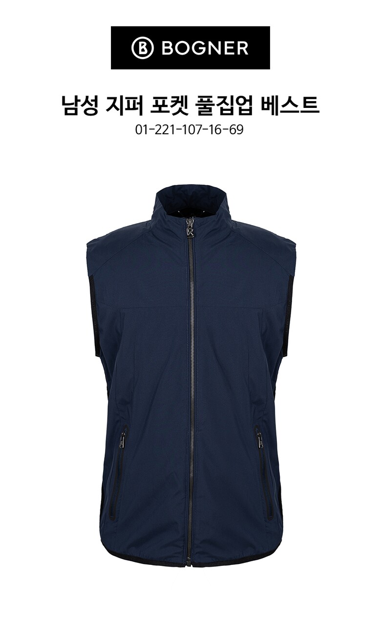 [보그너] 남성 지퍼 포켓 풀집업 베스트 NAVY