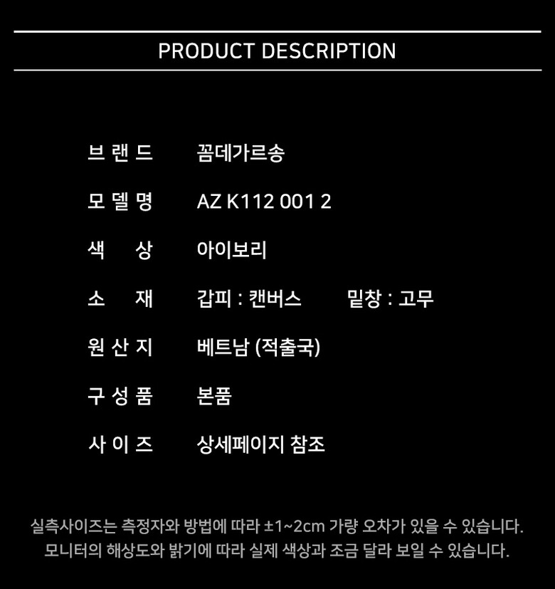 | 1. 제품 소재 (운동화인 경우에는 겉감, 안감을 구분하여 표시) | 상세페이지 참조 |