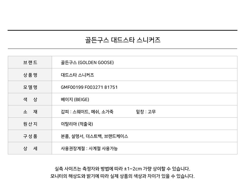 - #리본즈코리아 #GMF00199F00327181751 #[명품] #골든구스 #대드스타 #스니커즈 #베이지 #GMF00199 #F003271 #81751 #남성 #슈즈 #로우탑스니커즈
