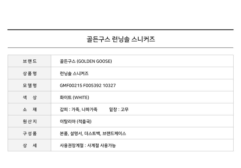 - #리본즈코리아 #GMF00215F00539210327 #[명품] #골든구스 #런닝솔 #스니커즈 #화이트 #GMF00215 #F005392 #10327 #남성 #슈즈 #로우탑스니커즈
