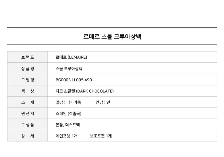 - #리본즈코리아 #BG0003LL095490 #[명품] #25SS #르메르 #스몰 #크루아상백 #다크초콜렛 #BG0003 #LL095 #490 #남성 #가방/핸드백 #크로스/메신저백 #크로스백