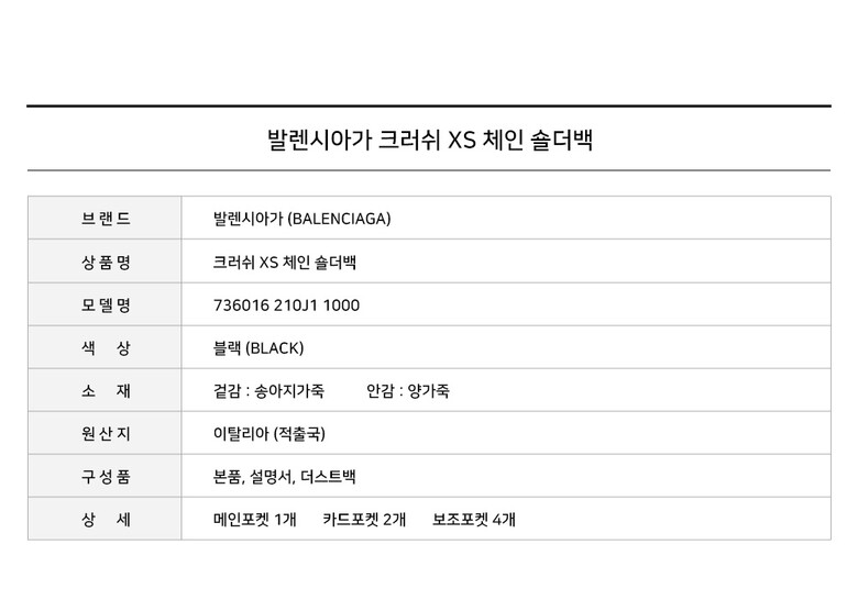 - #리본즈코리아 #736016210J11000 #[명품] #발렌시아가 #크러쉬 #XS #체인 #숄더백 #블랙 #736016 #210J1 #1000 #여성 #가방/핸드백 #크로스/메신저백 #크로스백
