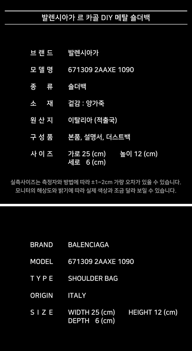- #리본즈코리아 #6713092AAXE1090 #[명품] #발렌시아가 #르 #카골 #DIY #메탈 #숄더백 #블랙 #671309 #2AAXE #1090 #여성 #가방/핸드백 #숄더백/호보백