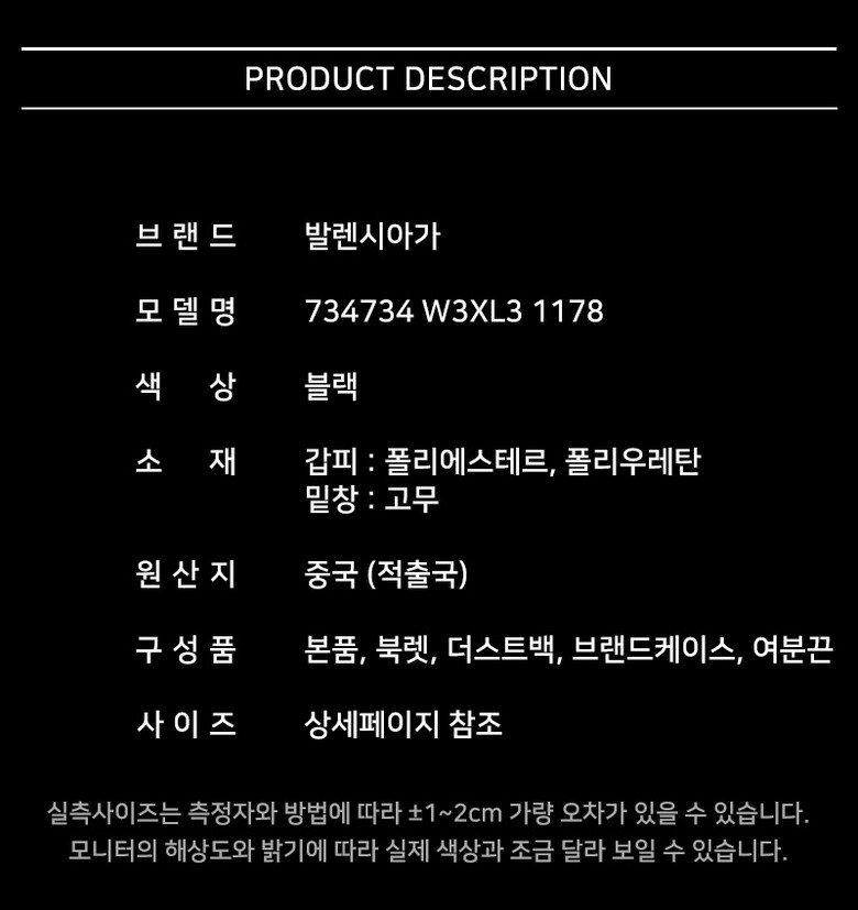 [명품] 발렌시아가 3XL 스니커즈 블랙 734734 W3XL3 1178