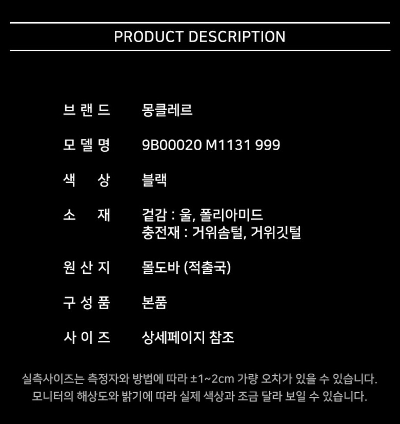 [명품] 몽클레르 로고 패치 울 패딩 자켓 블랙 9B00020 M1131 999