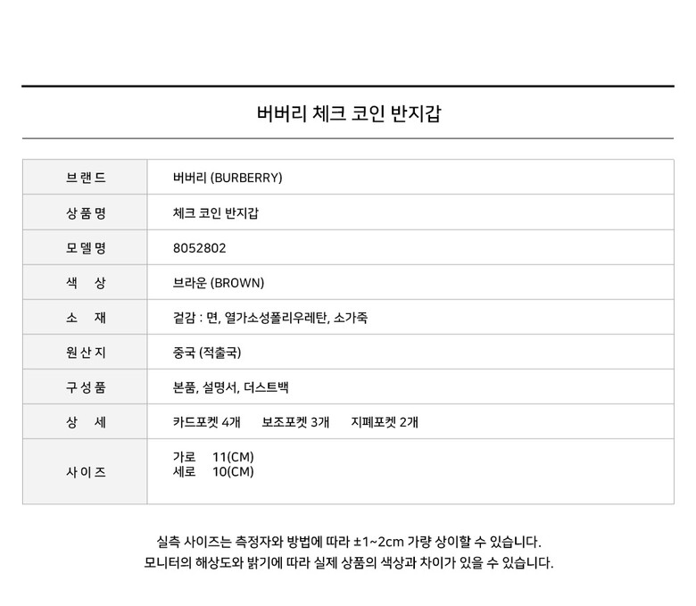 [명품] 버버리 체크 코인 반지갑 브라운 8052802