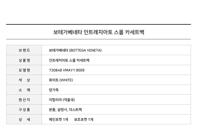 - #리본즈코리아 #730848VMAY19009 #[명품] #보테가베네타 #인트레치아토 #스몰 #카세트백 #화이트 #730848 #VMAY1 #9009 #여성 #가방/핸드백 #크로스/메신저백 #크로스백