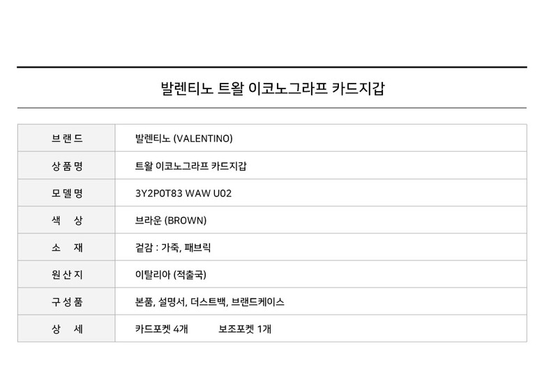 - #리본즈코리아 #3Y2P0T83WAWU02 #[명품] #발렌티노 #트왈 #이코노그라프 #카드지갑 #브라운 #3Y2P0T83 #WAW #U02 #남성 #지갑 #카드/명함지갑 #카드지갑홀더