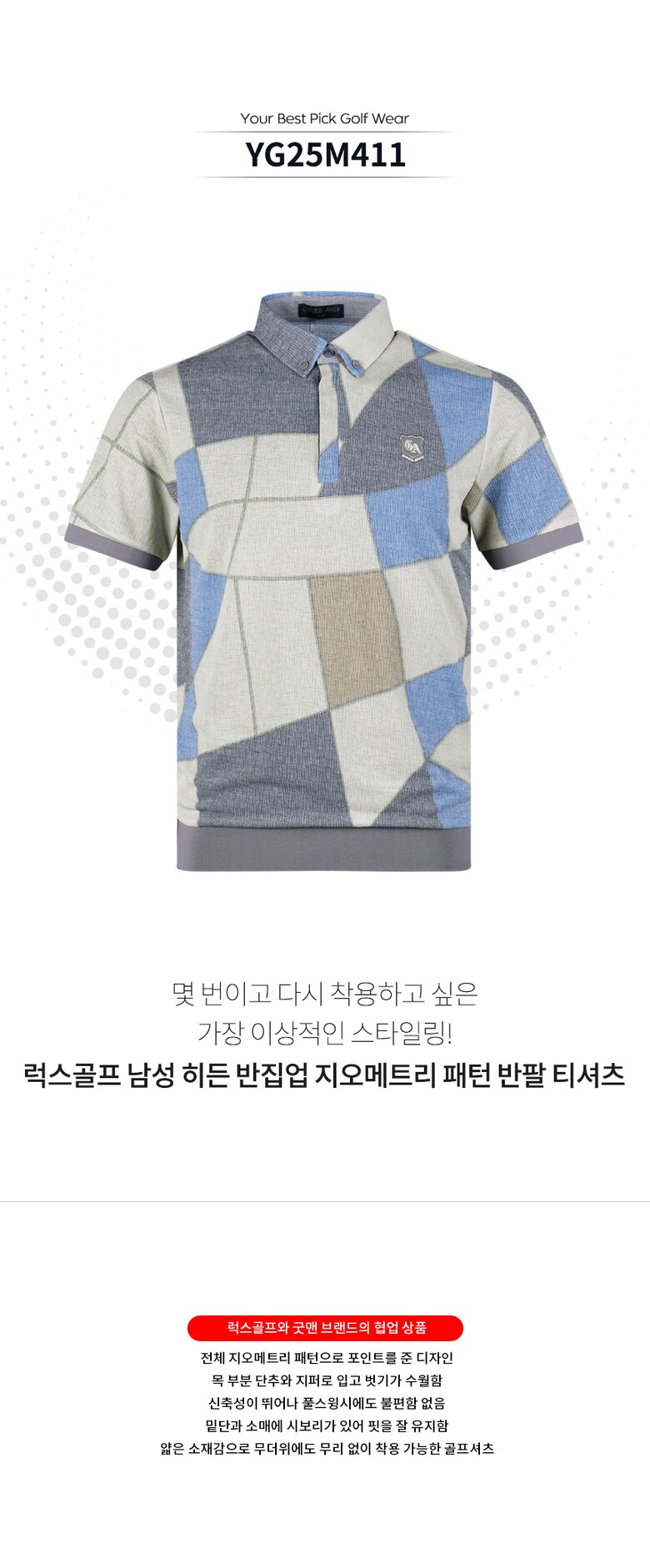 럭스골프 남성 히든 반집업 지오메트리 패턴 반팔 티셔츠 YG25M411