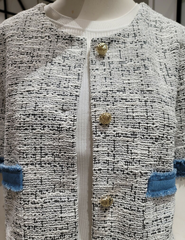 SI골드단추 배색포인트 트위드 숏자켓SKJAG01190