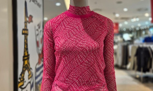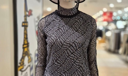 3.하프넥 이너셔츠 착용 후 메쉬 긴팔 크롭탑 레이어드!