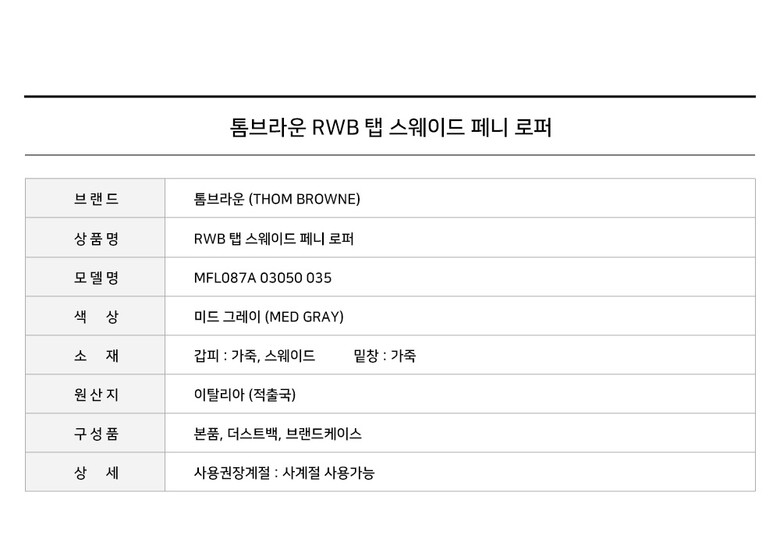 - #리본즈코리아 #MFL087A03050035 #[명품] #톰브라운 #바시티 #페니 #스웨이드 #로퍼 #미드그레이 #MFL087A #03050 #035 #남성 #슈즈 #로퍼/드라이빙