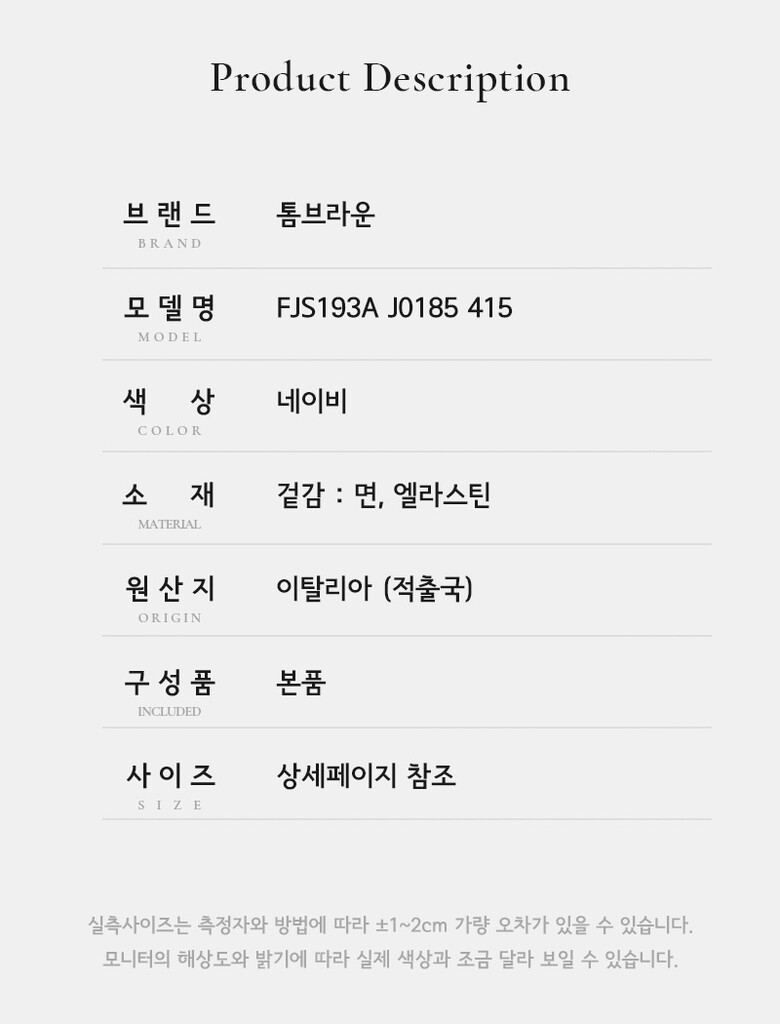 • 아울렛 상품의 특성 상 “택이 훼손”된 경우가 있으나 이는 불량이 아니며 무료 반품 대상 상품이 아닙니다.