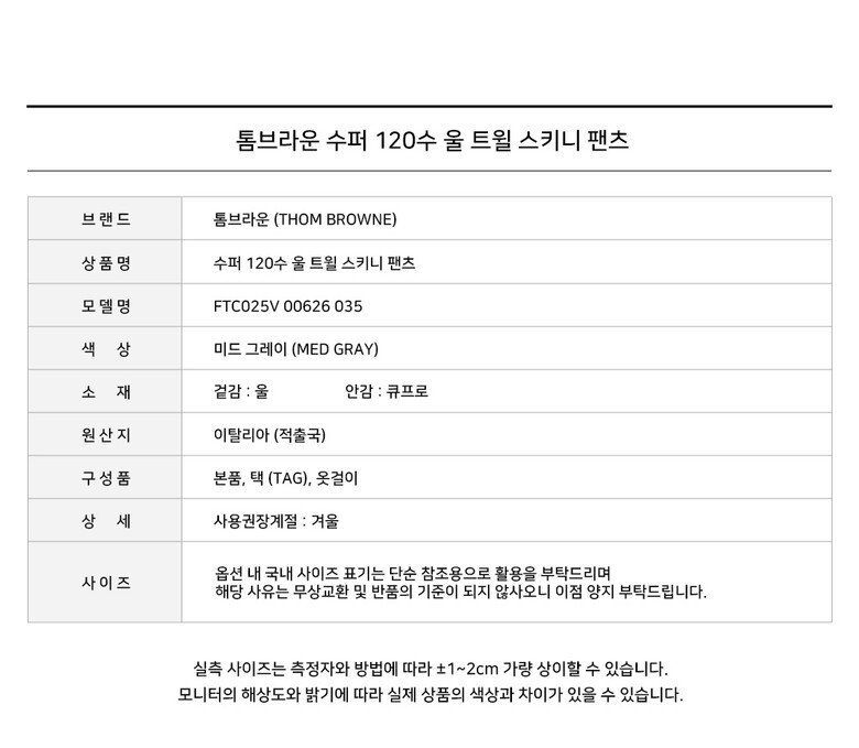 - #리본즈코리아 #FTC025V00626035 #[명품] #톰브라운 #수퍼 #120수 #울 #트윌 #스키니 #팬츠 #미드그레이 #FTC025V #00626 #035 #여성 #의류 #하의 #면바지