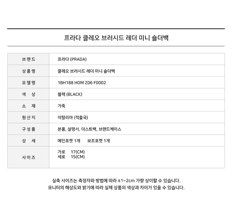 - #리본즈코리아 #1BH188HOMZO6F0002 #[명품] #프라다 #클레오 #브러시드 #레더 #미니 #숄더백 #블랙 #1BH188 #HOM #ZO6 #F0002 #여성 #가방/핸드백 #숄더백/호보백