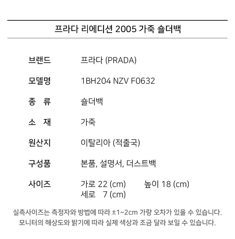 #리본즈코리아 #1BH204NZVF0632 #[명품] #프라다 #리에디션 #2005 #가죽 #숄더백 #블랙 #1BH204 #NZV #F0632 #여성 #가방/핸드백 #숄더백/호보백