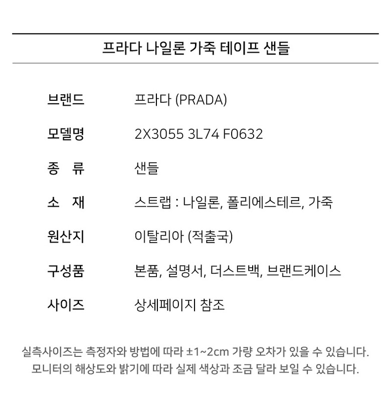 [명품] 프라다 나일론 가죽 테이프 샌들 블랙 2X3055 3L74 F0632