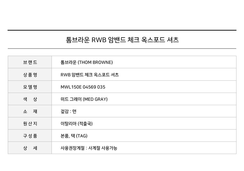 - #리본즈코리아 #MWL150E04569035 #[명품] #톰브라운 #RWB #체크 #옥스포드 #셔츠 #미드그레이 #MWL150E #04569 #035 #남성 #의류 #블라우스/셔츠 #캐주얼셔츠