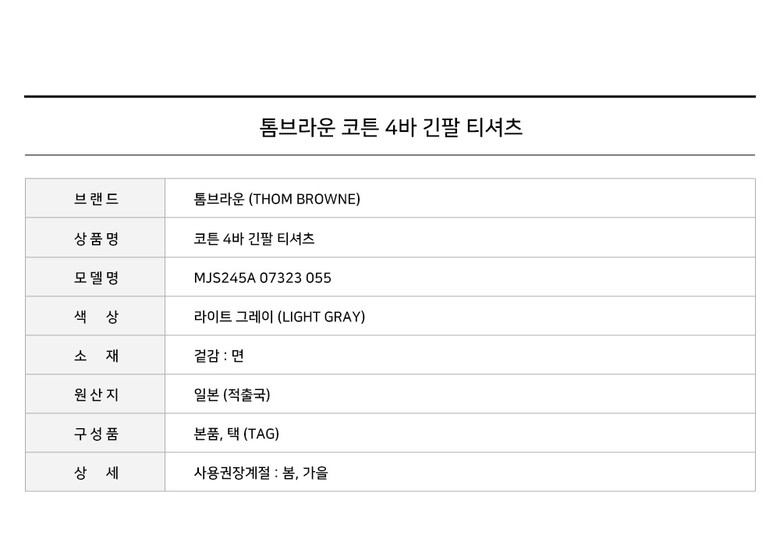 [명품] 25SS 톰브라운 코튼 4바 긴팔 티셔츠 라이트그레이 MJS245A 07323 055