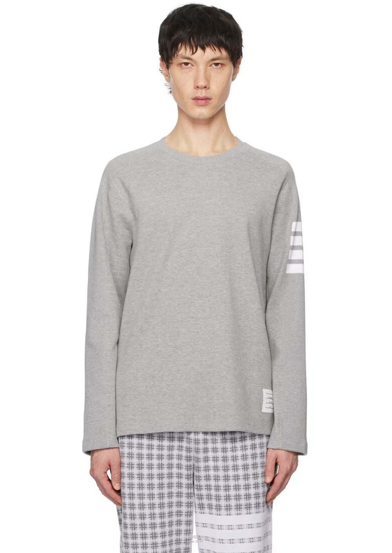 - #리본즈코리아 #MJS245A07323055 #[명품] #25SS #톰브라운 #코튼 #4바 #긴팔 #티셔츠 #라이트그레이 #MJS245A #07323 #055 #남성 #의류 #상의 #긴팔티셔츠