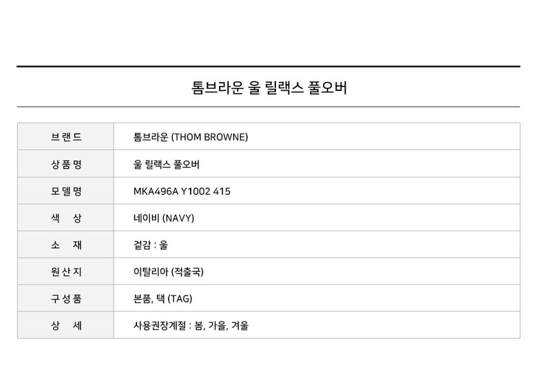 - #리본즈코리아 #MKA496AY1002415 #[명품] #25SS #톰브라운 #울 #릴랙스 #풀오버 #네이비 #MKA496A #Y1002 #415 #남성 #의류 #니트/가디건 #니트