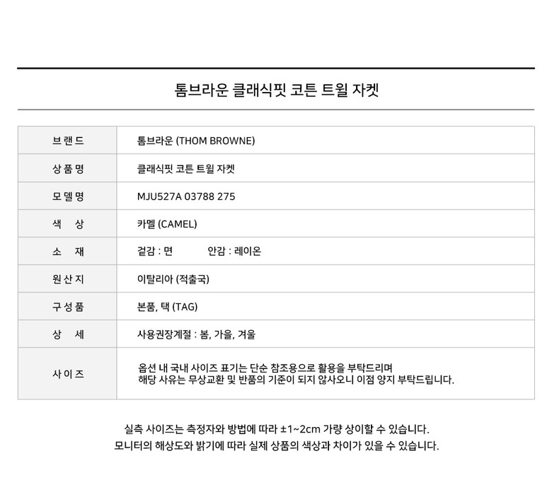 | 6. 세탁방법 및 취급시 주의사항 | 상품상세 참조 |