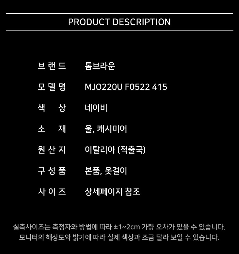 | 6. 세탁방법 및 취급시 주의사항 | 상품상세 참조 |