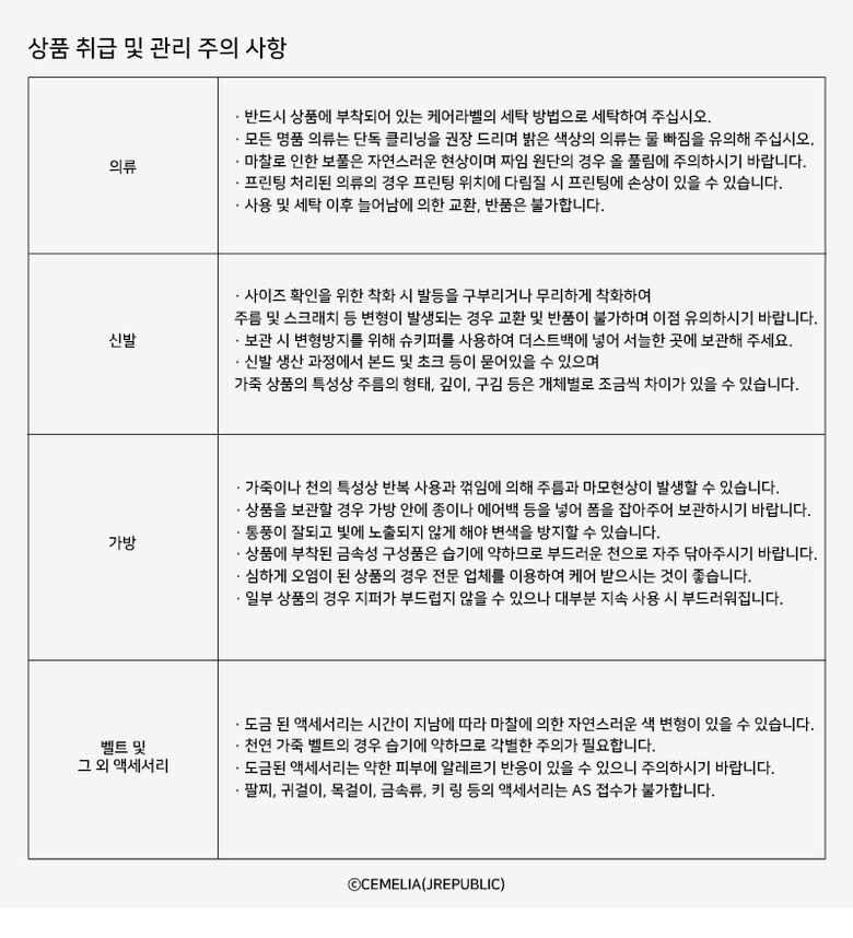 | 6. 취급시 주의사항 | 상품상세 참조 |
