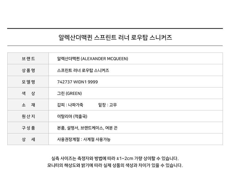 - #리본즈코리아 #742737WIDN19999 #[명품] #알렉산더맥퀸 #스프린트 #러너 #스니커즈 #그린 #742737 #WIDN1 #9999 #여성 #슈즈 #로우탑스니커즈