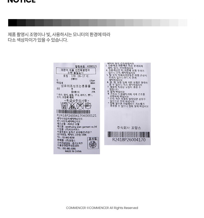 상품불량에 의한 반품, A/S, 품질보증 및 피해보상 등에 관한 사항은 소비자 분쟁해결기준(공정거래위원회 고시) 구매자가 미성년자인 경우에는 상품 구입시 법정대리인이 동의하지 아니하면 미성년자 본인 또는 법정대리인이 구매취소 할 수 있습니다. |
