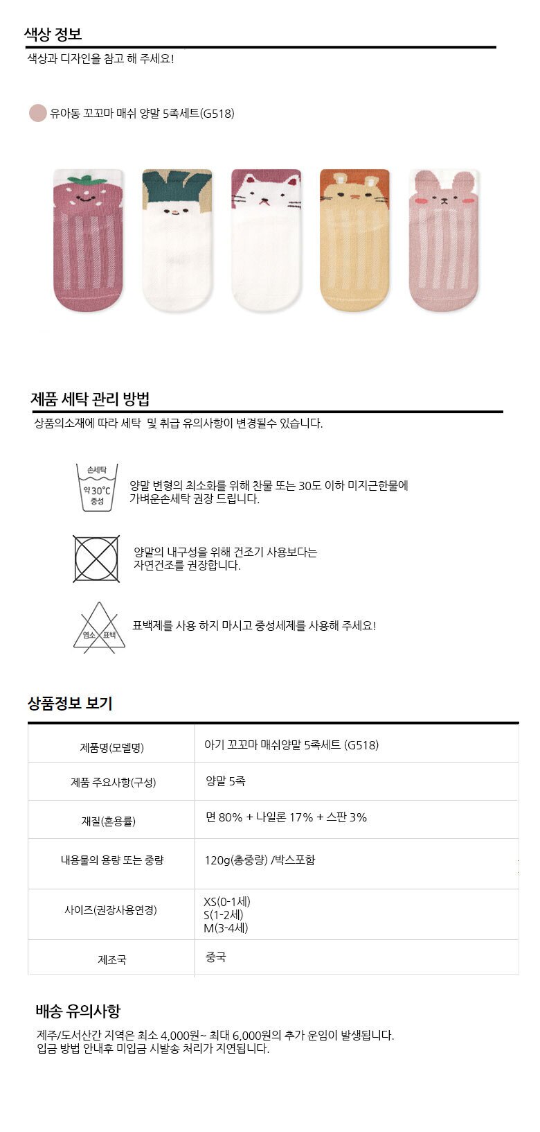 신생아 아기 꼬꼬마 매쉬양말 5족세트(G518)