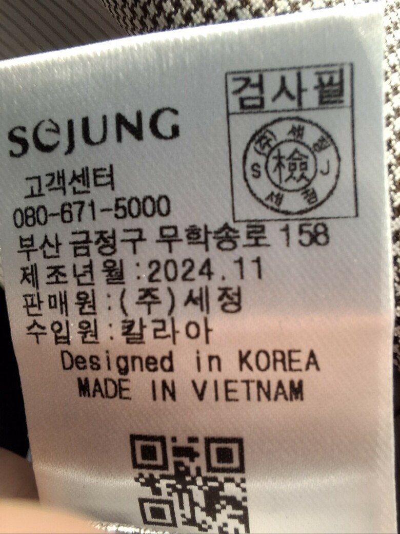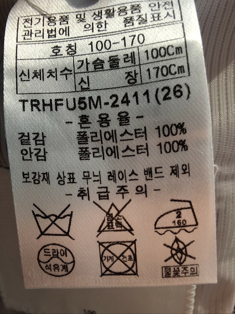 | 1. 제품 소재 (섬유의 조성 또는 혼용률을 백분율로 표시, 기능성인 경우 성적서 또는 허가서) | 겉감:폴리에스테르 100% / 안감:폴리에스테르 100% |