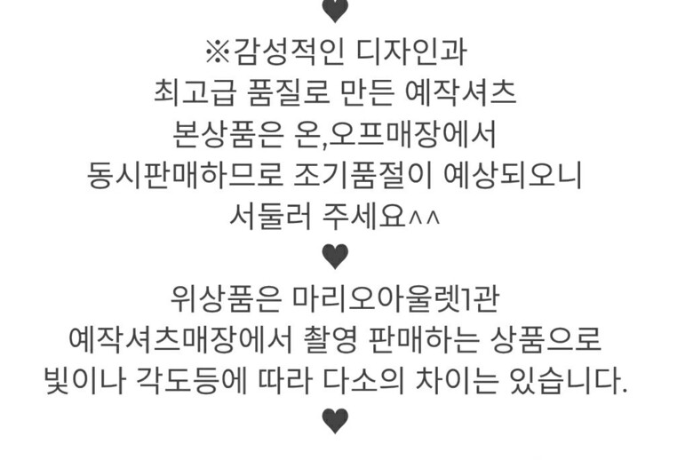 • 처음 배송된 상품상태와 다를 경우(세탁/착용 후 외출하신 경우) 반품이 불가합니다.