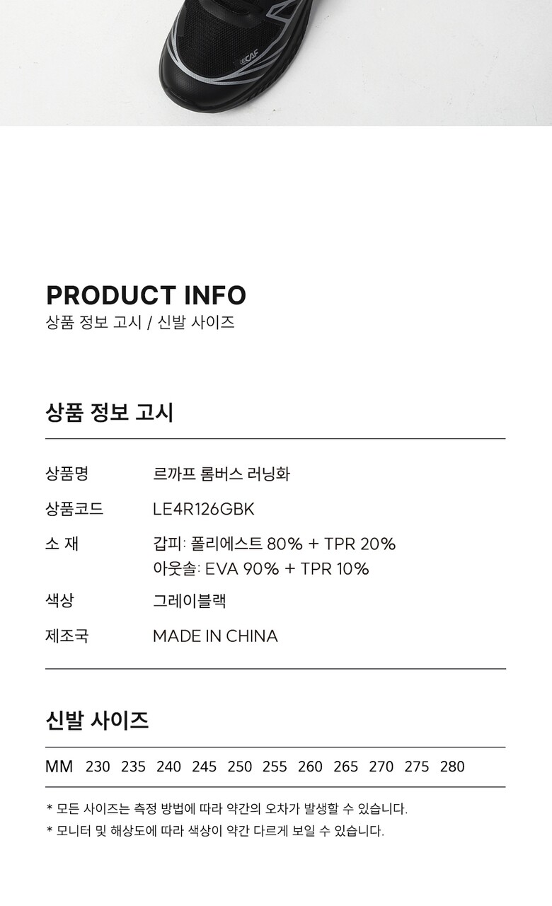 르까프 롬버스 런닝화 그레이블랙 LE4R126GBK