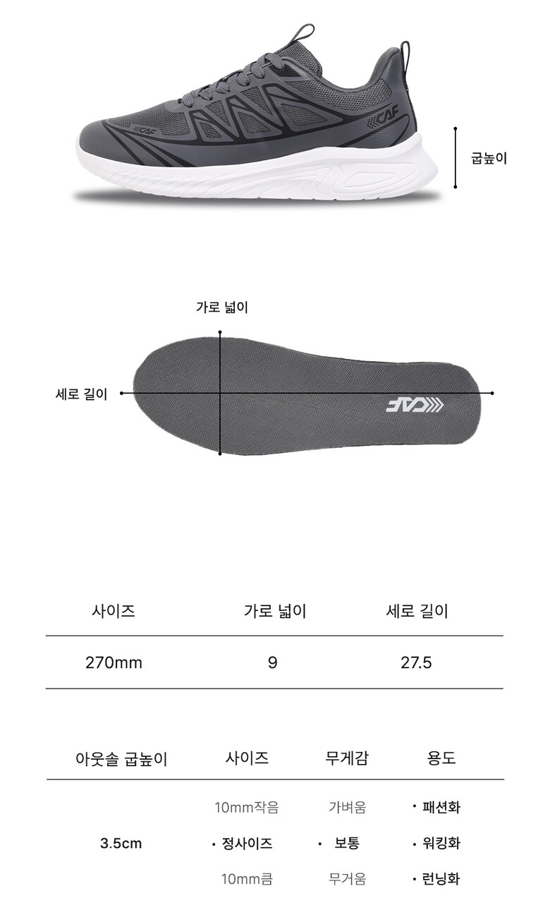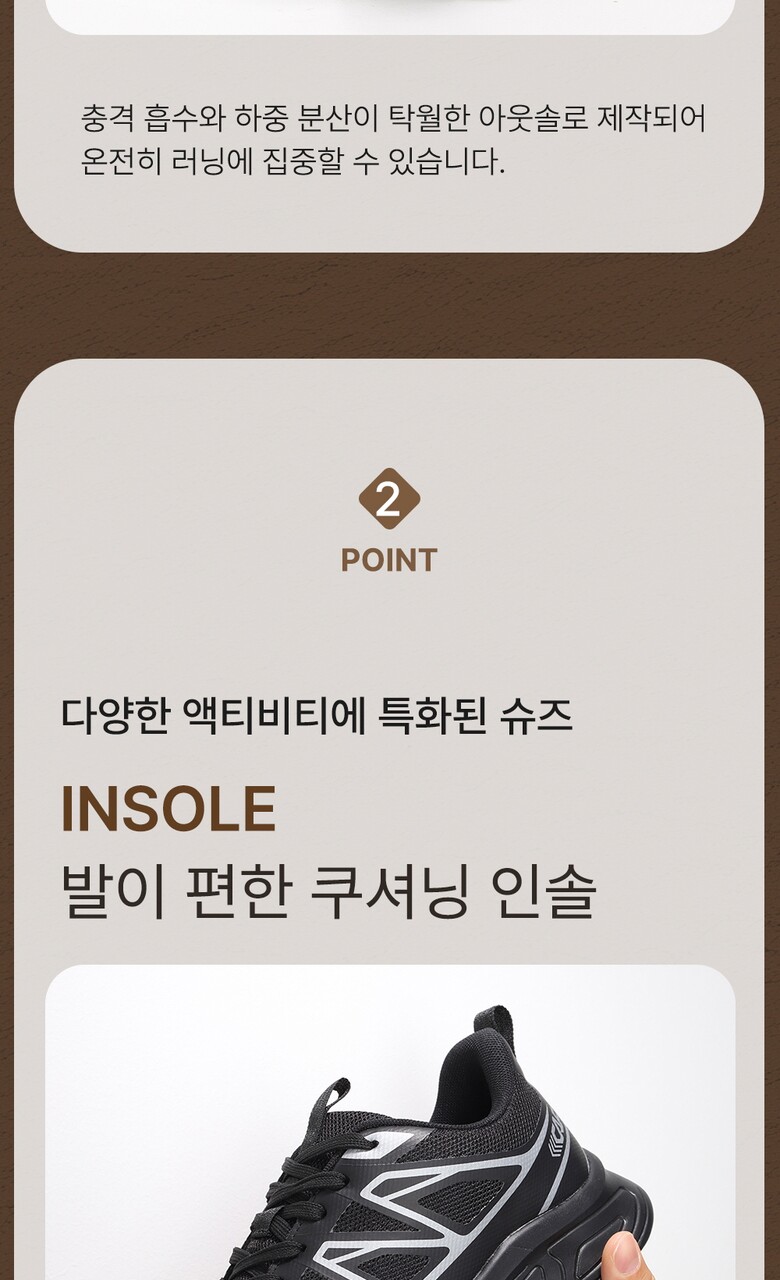 | 1. 제품 소재 (운동화인 경우에는 겉감, 안감을 구분하여 표시) | 상세페이지참조 |
