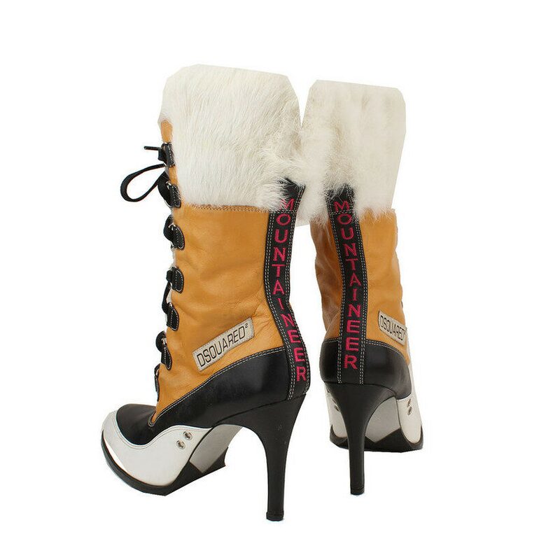 [중고명품] 디스퀘어드2 탠저린오렌지 퍼장식 레이스업 미들부츠 37