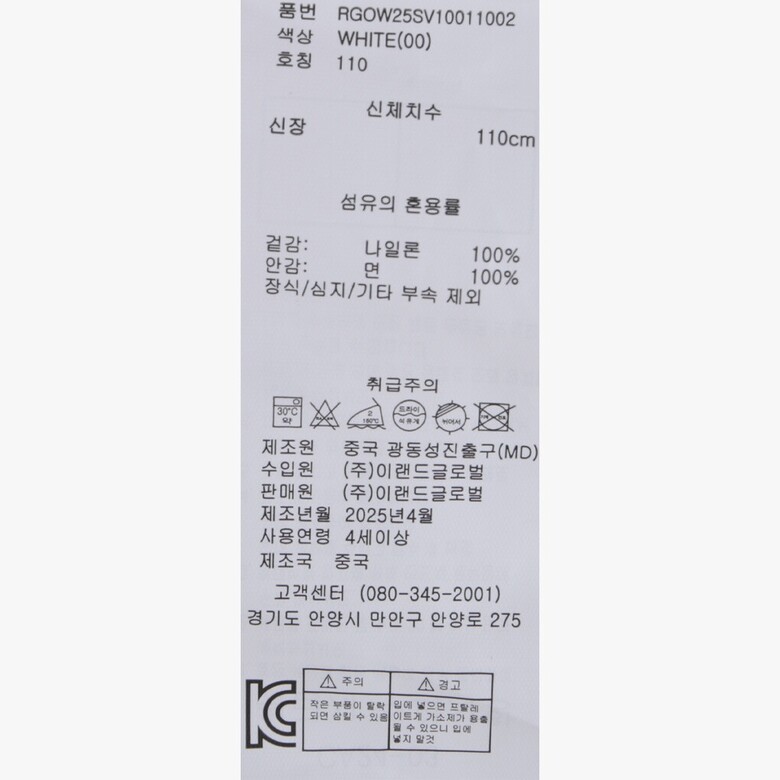 | 1. 제품 소재 (섬유의 조성 또는 혼용률을 백분율로 표시, 기능성인 경우 성적서 또는 허가서) | 상품상세참조 |