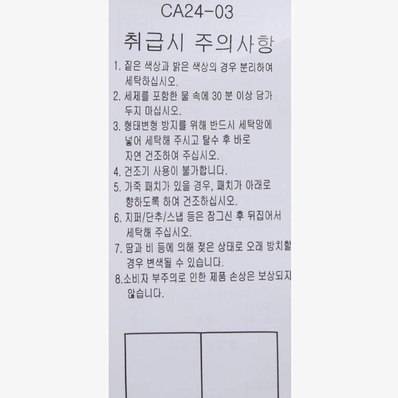 | 6. 세탁방법 및 취급시 주의사항 | 상품상세참조 |