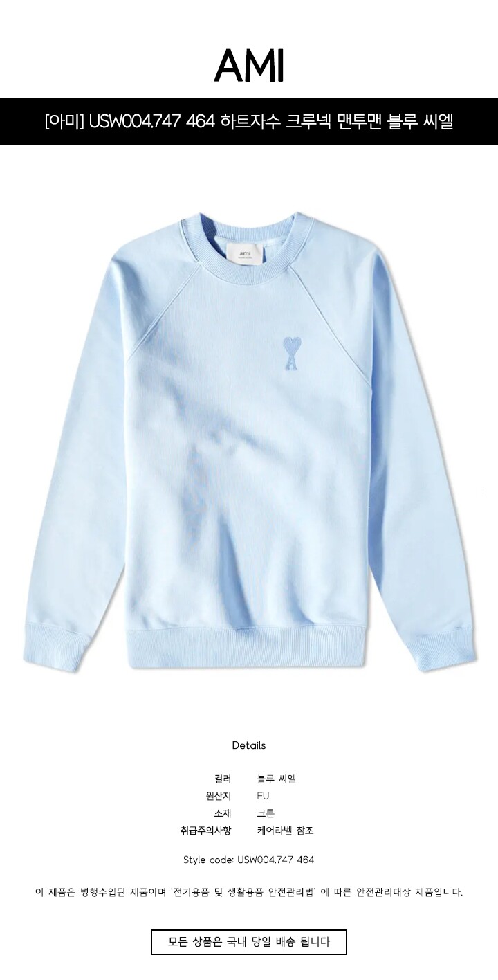 #리본즈코리아 #USW004.747464 #[명품] #USW004.747 #464 #하트자수 #크루넥 #맨투맨 #블루 #씨엘 #남성 #/ #의류 #상의