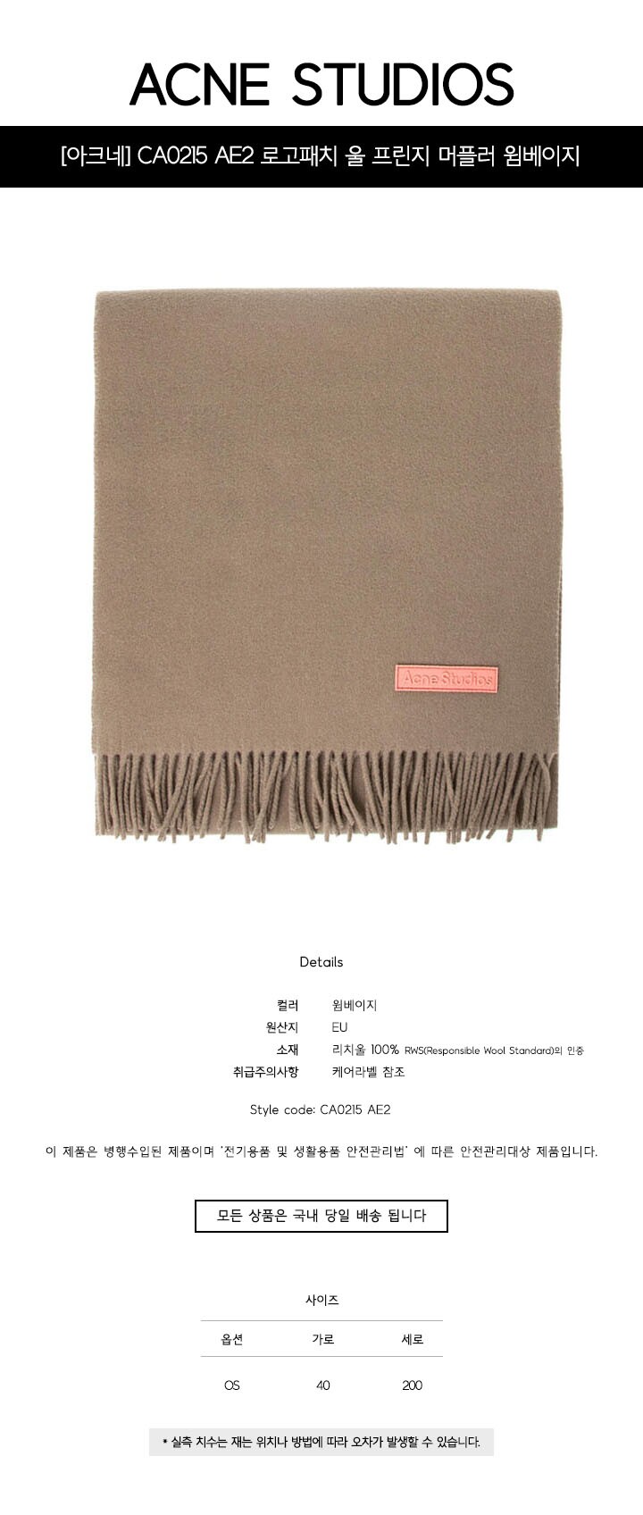 [명품] CA0215 AE2 로고패치 울 프린지 머플러 윔베이지 머플러 /