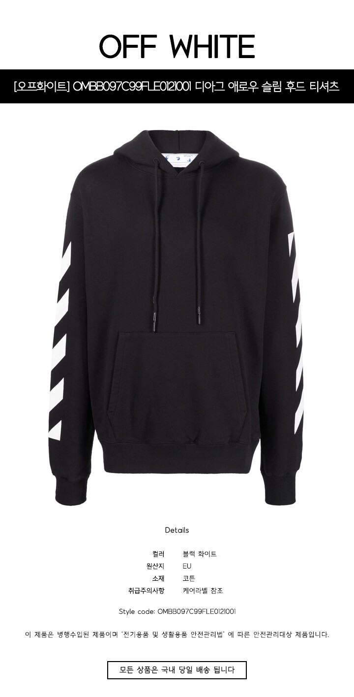 [명품] OMBB097C99FLE0121001 디아그 애로우 슬림 후드 블랙 화이트 남성 후드 /
